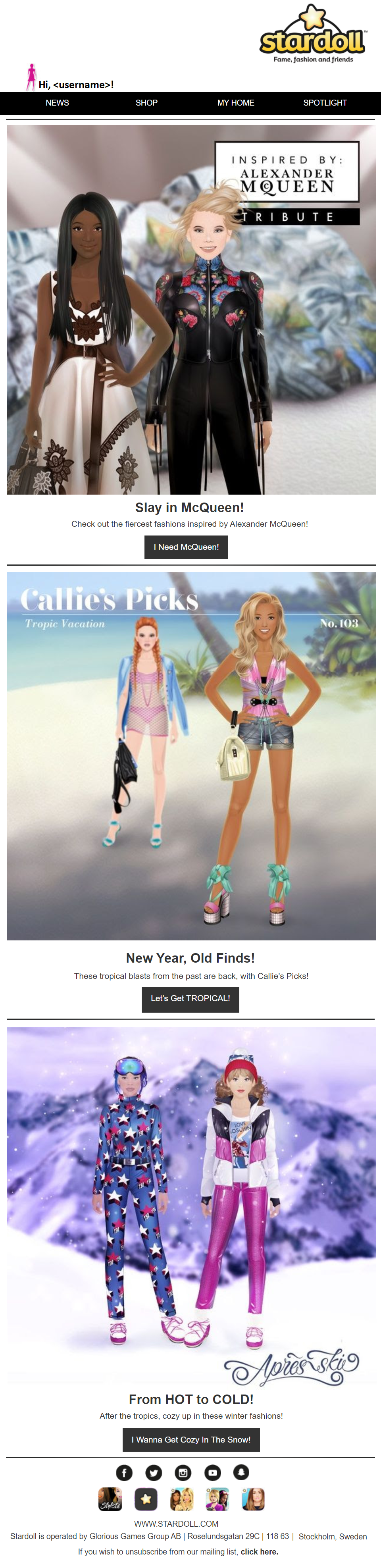Weekly email blast newsletters have been a staple to alert members on what’s going on, what items were released, and what special events and partnerships are happening. Below are two newsletters I created to send out to our membership. They are primarily photos and light on text, but the text is quippy, fun, and most importantly: fashionable. Each email blast is A/B tested with multiple subject lines, etc. in an effort to improve opening rates for future blasts.
